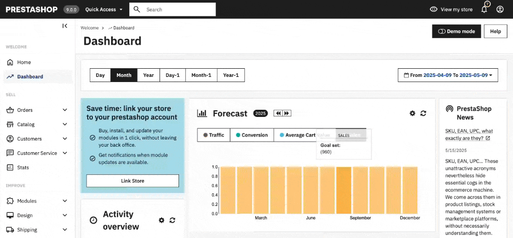 PrestaShop zawiera zintegrowane narzędzia do analizy i raportowania, które umożliwiają monitorowanie różnych aspektów działalności sklepu, od ruchu na stronie po konwersje. To daje możliwość ciągłego optymalizowania działalności na podstawie rzeczywistych danych.